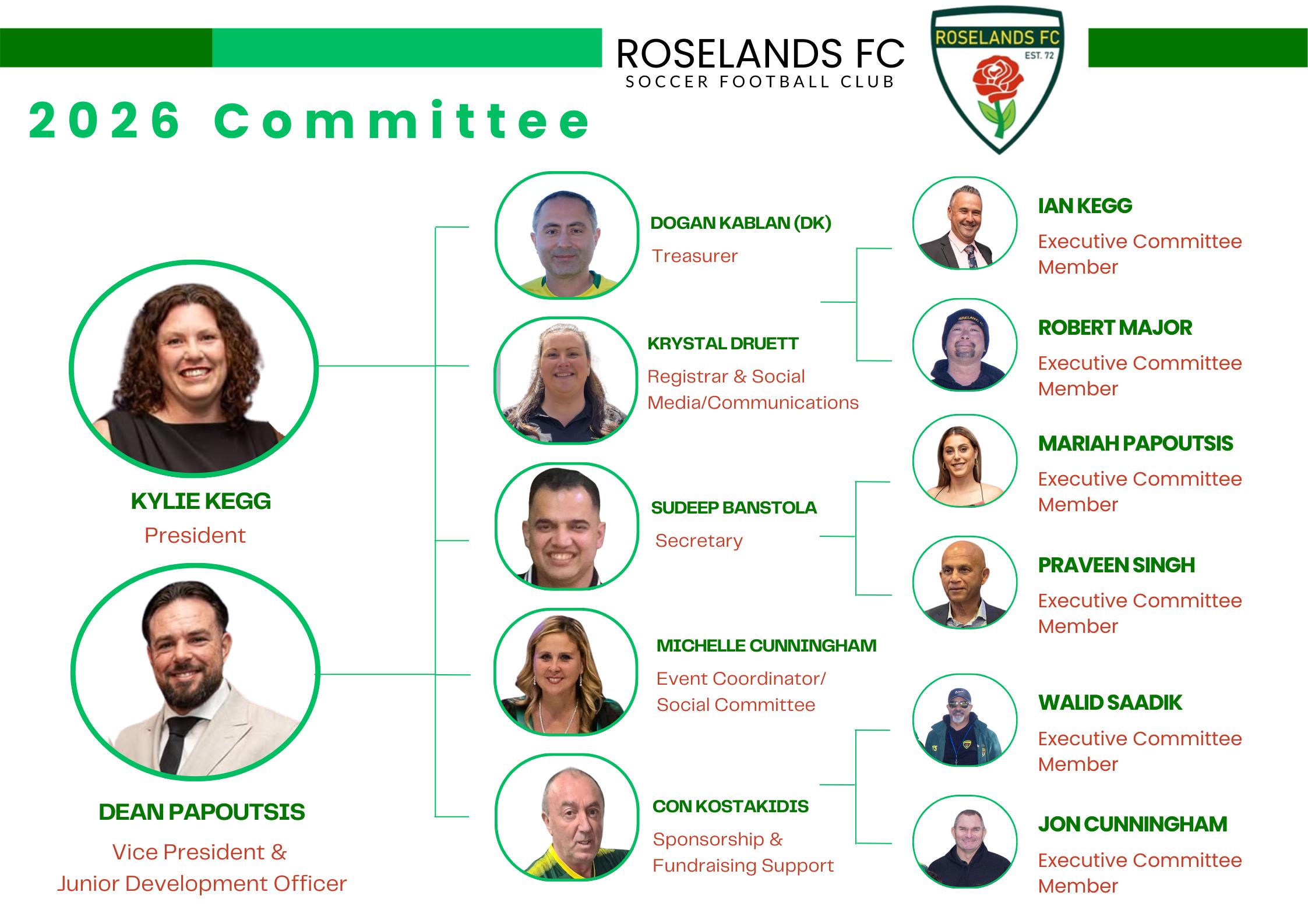 As a volunteer run, community club, Roselands FC thrives because of people who give their time to support our players, families, coaches, and volunteers. A big thank you to everyone on the 2026 committee for stepping up and giving back to the club.