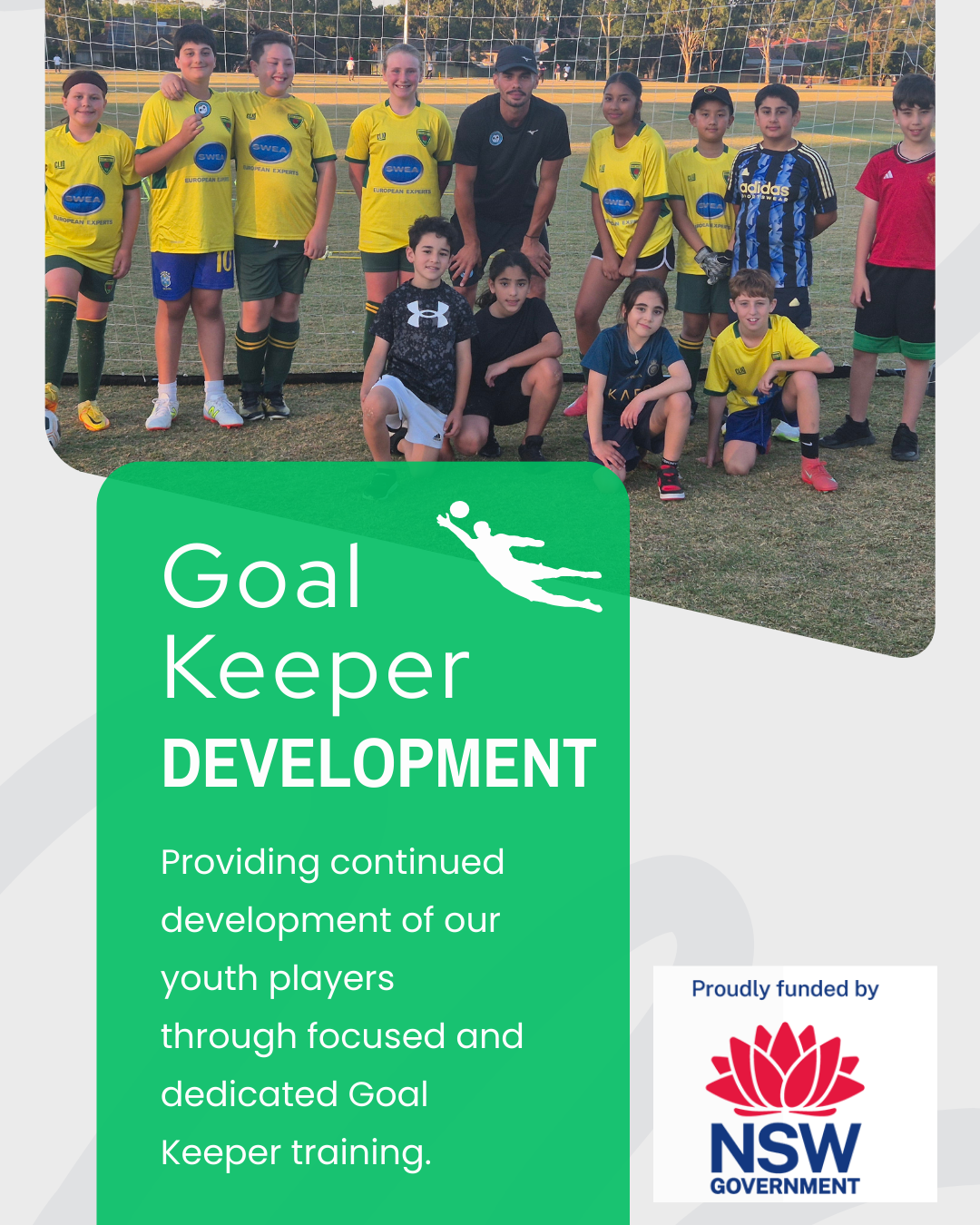 Roselands FC is committed to continually improving the development of our players across all age groups. This year, we were fortunate to receive funding from the NSW Government to support our Goalkeeper Development Program. This grant has allowed us to provide specialised training that strengthens skills, builds confidence and supports the long-term growth of our young goalkeepers.
